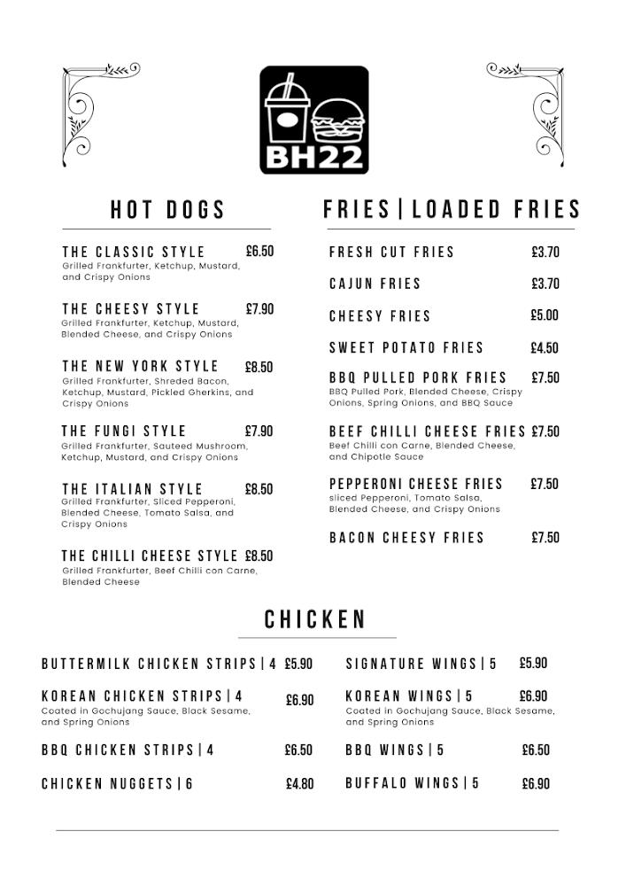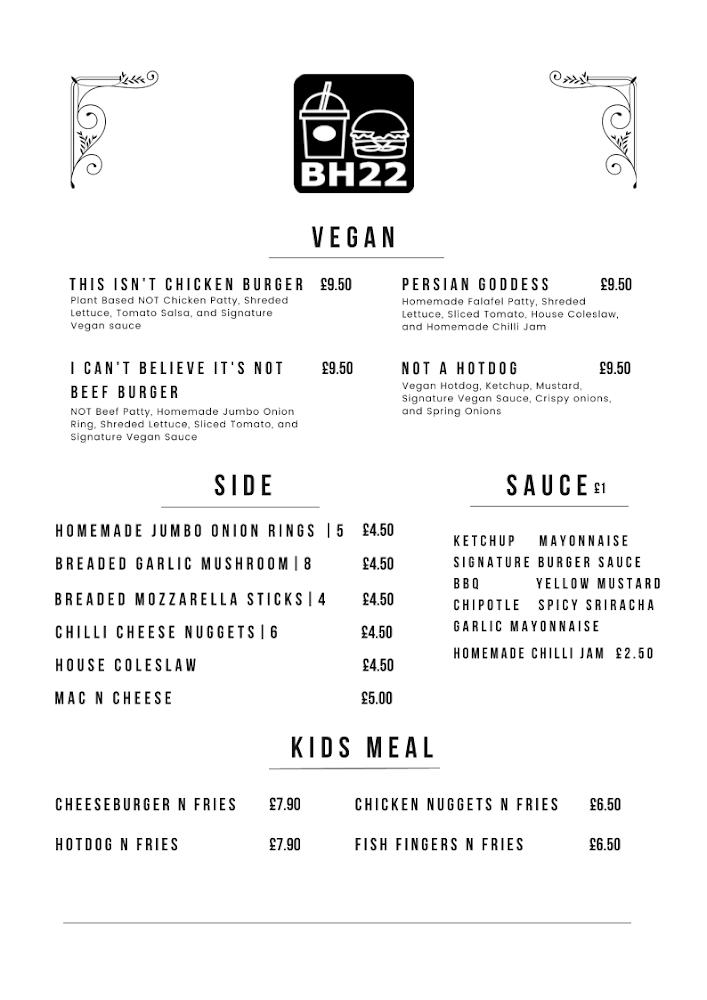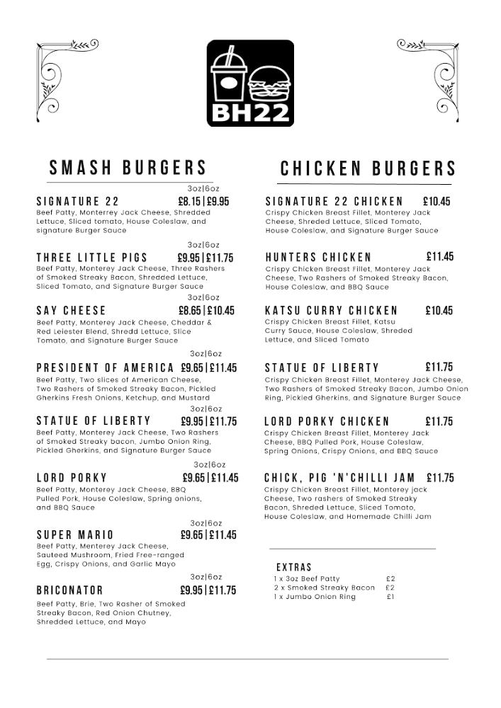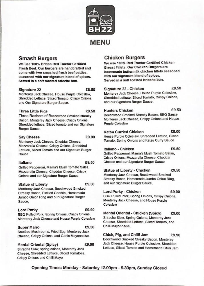 Nestled at 34 Victoria Rd, Ferndown, BH22 Burgers & Bubbles is a small yet charming eatery that has captured the hearts of locals. This independent establishment focuses on providing high-quality, fresh food that stands apart from typical fast-food outlets. With a focus on smash burgers and other mouthwatering offerings, the place thrives on its attention to detail and customer satisfaction. The relaxed atmosphere makes it ideal for families, friends, or individuals looking for a peaceful meal in a cozy environment. In addition to dining in, BH22 also offers takeaway and delivery options for those who prefer to enjoy their food at home. Open every day of the week, it ensures that hearty meals are always accessible, catering to both lunch and dinner crowds. The restaurant's commitment to fresh ingredients and unique flavor combinations has made it a favorite destination in Ferndown, drawing patrons from all over to experience its delicious offerings.